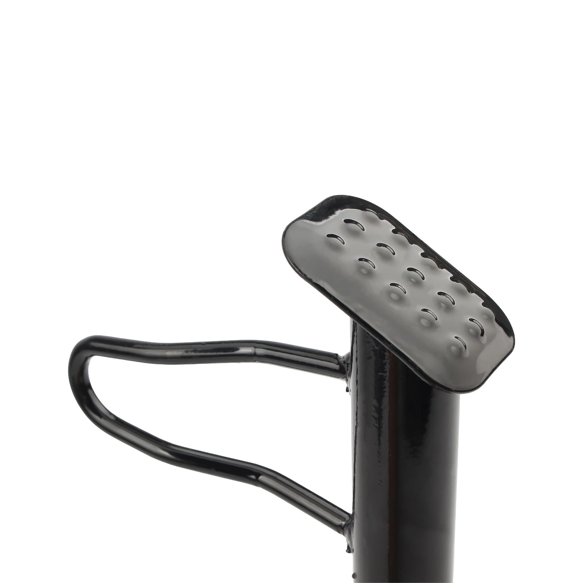 Realizzato in acciaio rinforzato, è dotato di una base d’appoggio ampia e antiscivolo, perfetta per garantire stabilità anche su superfici irregolari. La finitura nera opaca lo rende discreto ma resistente all’usura e agli agenti atmosferici.